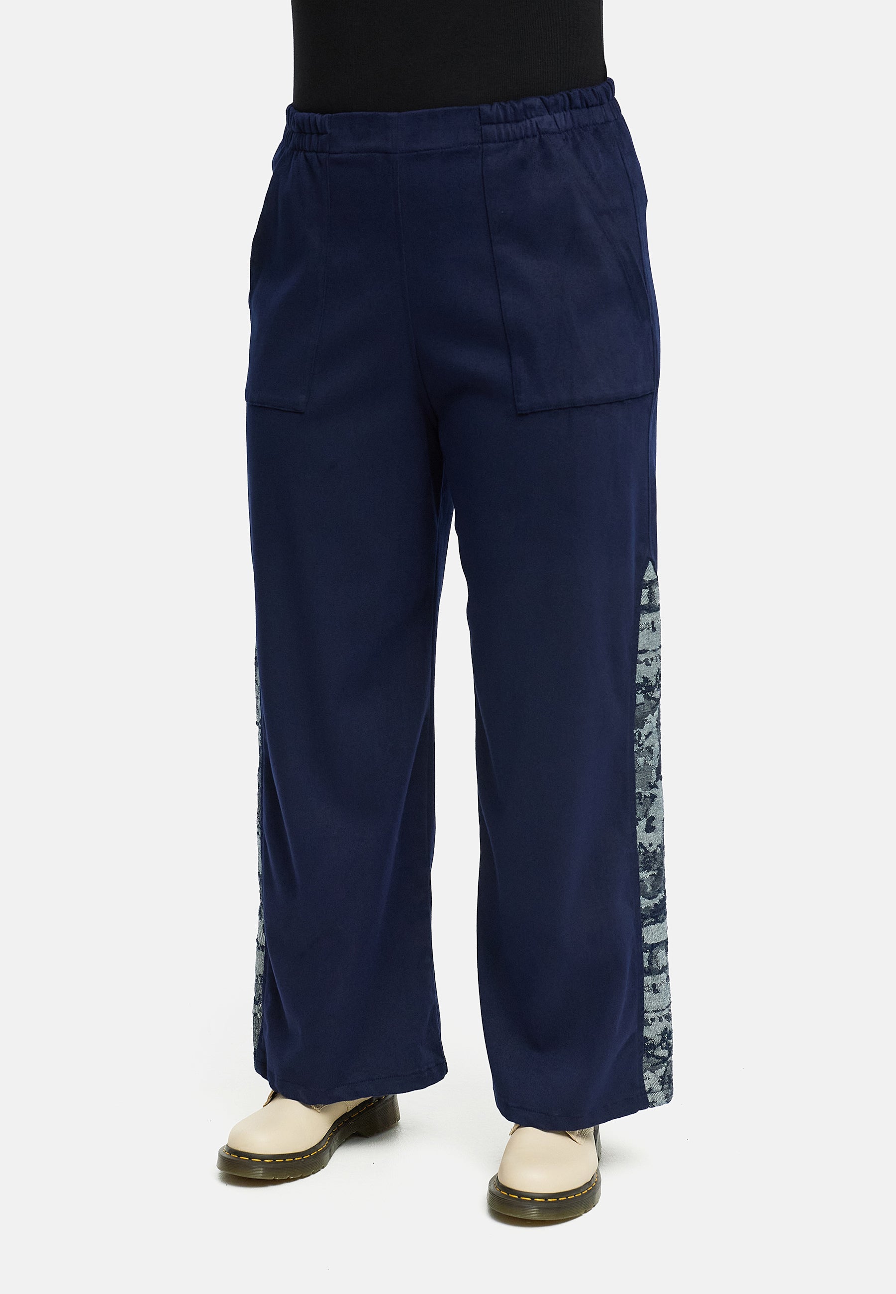 'Delina' Bukser Denim – navy, flydende & med printdetalje